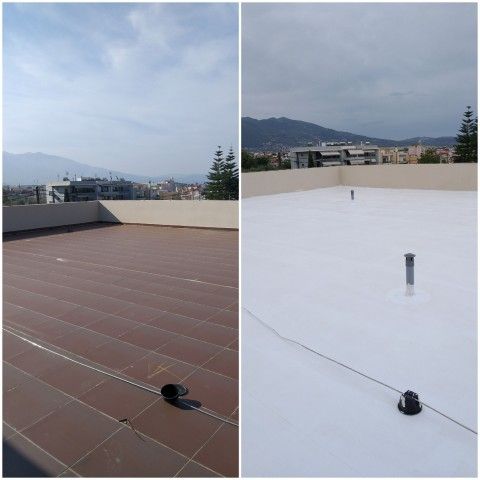Συντήρηση - Επισκευή Στεγανοποίησης Δώματος-Ταράτσας με Ελαστομερές Επαλειφόμενο Πολυουρεθανικό Υλικό Υψηλής Αντοχής και Ελαστικότητας.